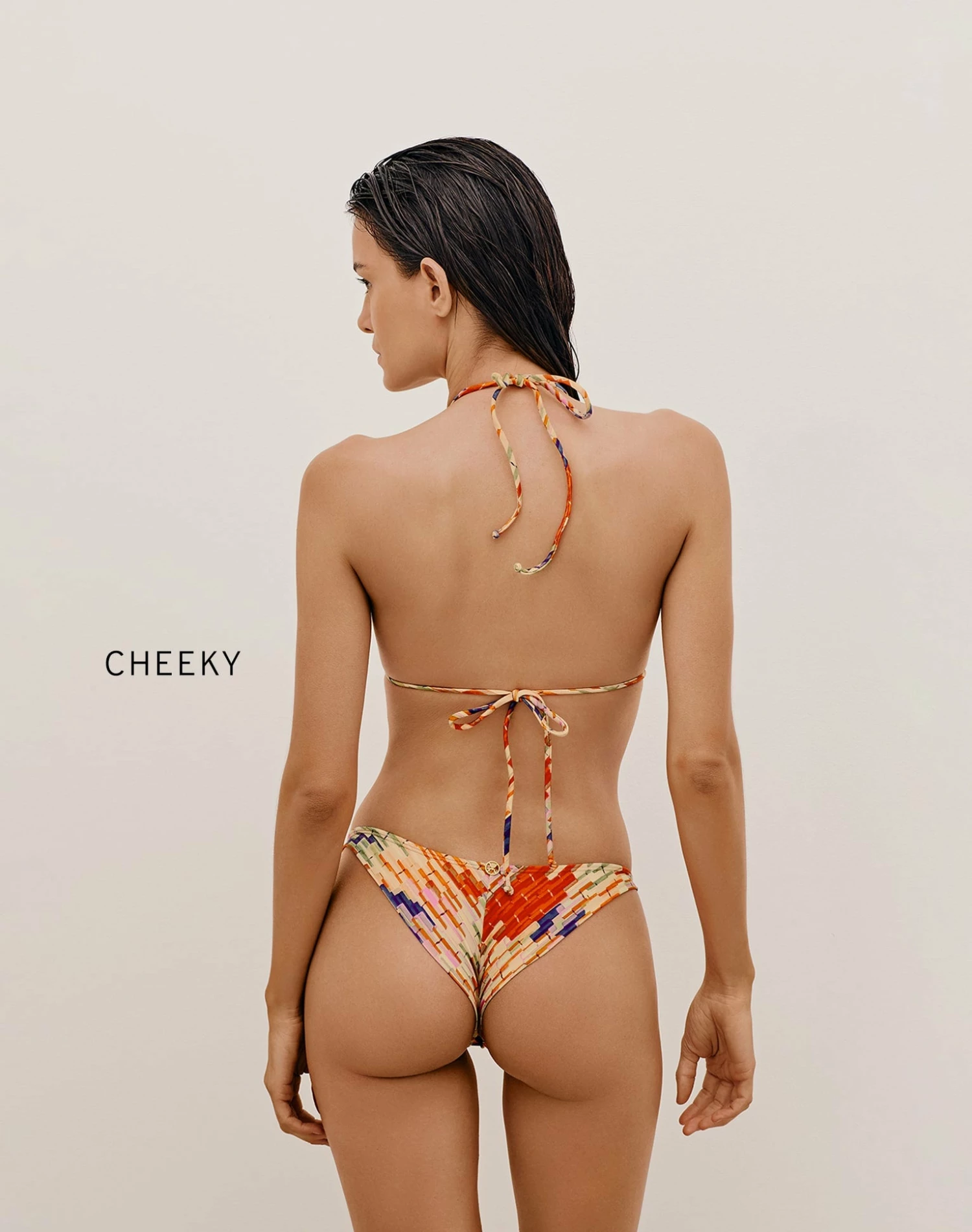 Beat the heat in style with the glamorous Allie Detail Bottom; perfectly fashioned in our ravishing Brazilian lycra with intricate 24k gold-plated ring links that take these bottoms to luxurious heights, making them it the perfect item to shine through on your next getaway.