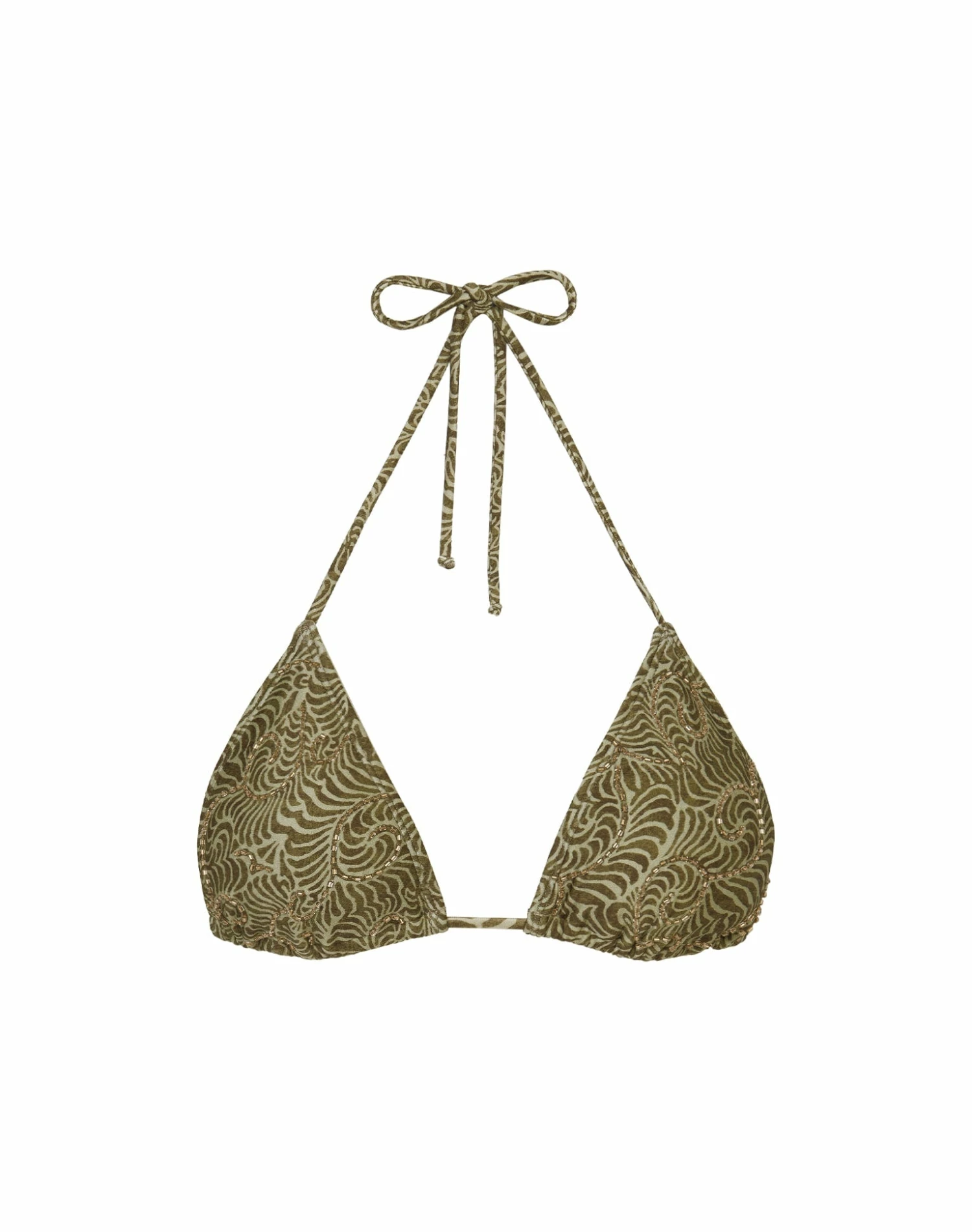 Add some glam to your swimwear in this classic tri top with subtle artisanal embroidery that is sure to make you shine on your next vacation.