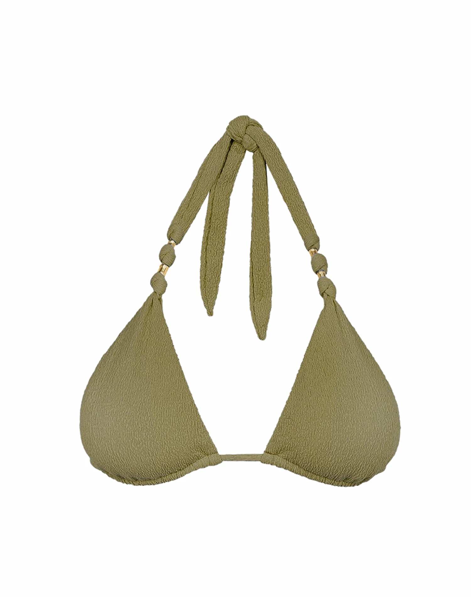 The Paula Top takes our classic triangle style includes a comfy fit and unique Vix style details like beading up front and knots at strap.