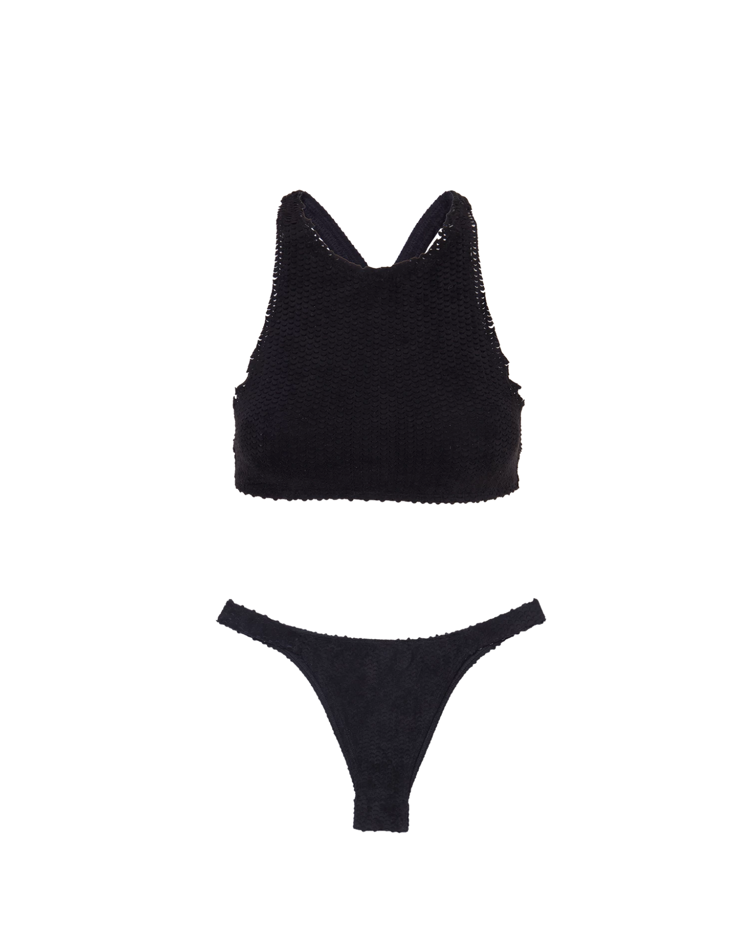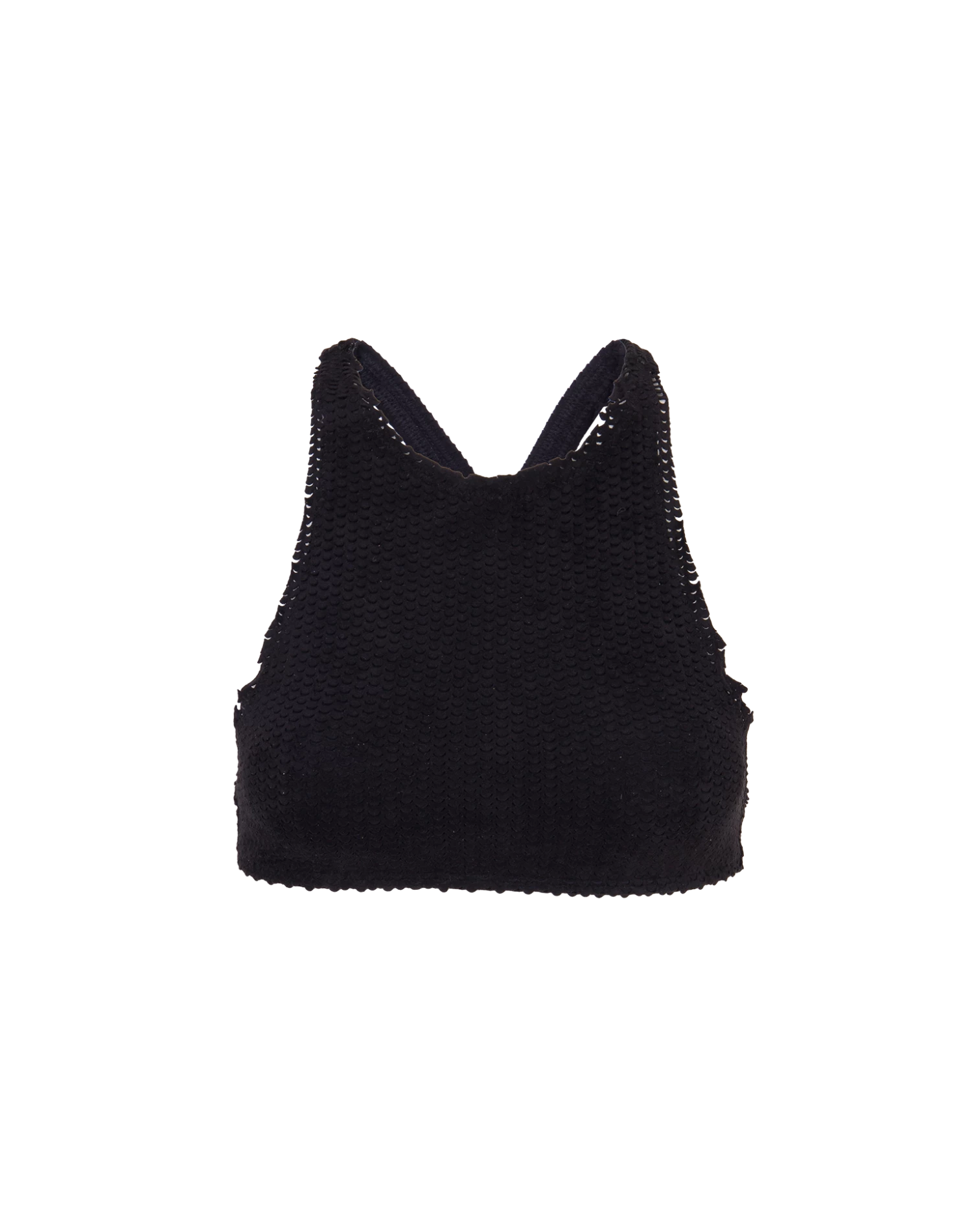 Statement top with an athletic feel and our exclusive scales fabric makes for the perfect companion for all your sun filled days.